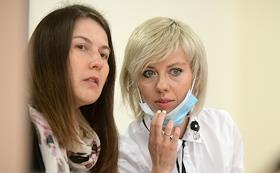Журналистка Людмила Савицкая (справа) во время судебного заседания Псковского городского суда по…