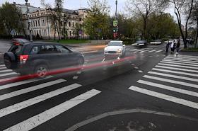 Жанровая фотография. Новая дорожная разметка диагональных пешеходных переходов пунктирными линиями.