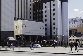 Виды Москвы. Жанровая фотография. Вывеска "Банкъ" на здании.