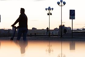 Жанровая фотография. Люди гуляют в сквере рядом с национальной библиотекой Татарстана на закате.