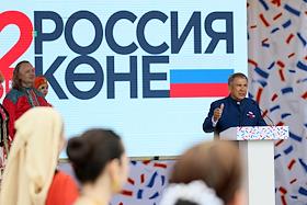 День России. Праздничные мероприятия в Казани. Президент Республики Татарстан Рустам Минниханов во…