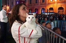 Церемония предсказания кота Ахилла из Эрмитажа исхода матча между сборными России и Бельгии.…
