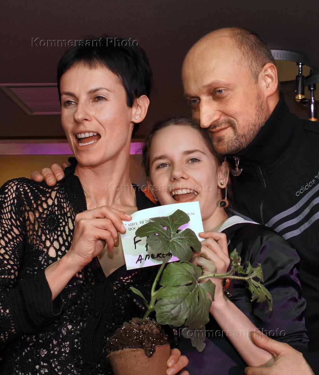Актриса Ирина Апексимова (слева) с дочерью Дашей и актер Гоша Куценко (справа) во время посадки…