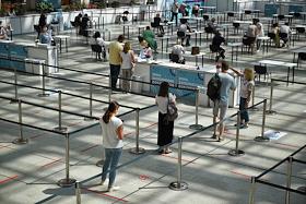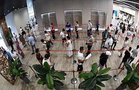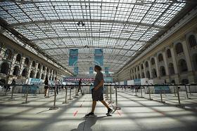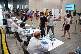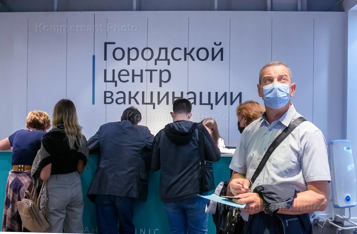 Работа городского центра вакцинации в ТРК "Галерея". Очередь пациентов на вакцинацию.