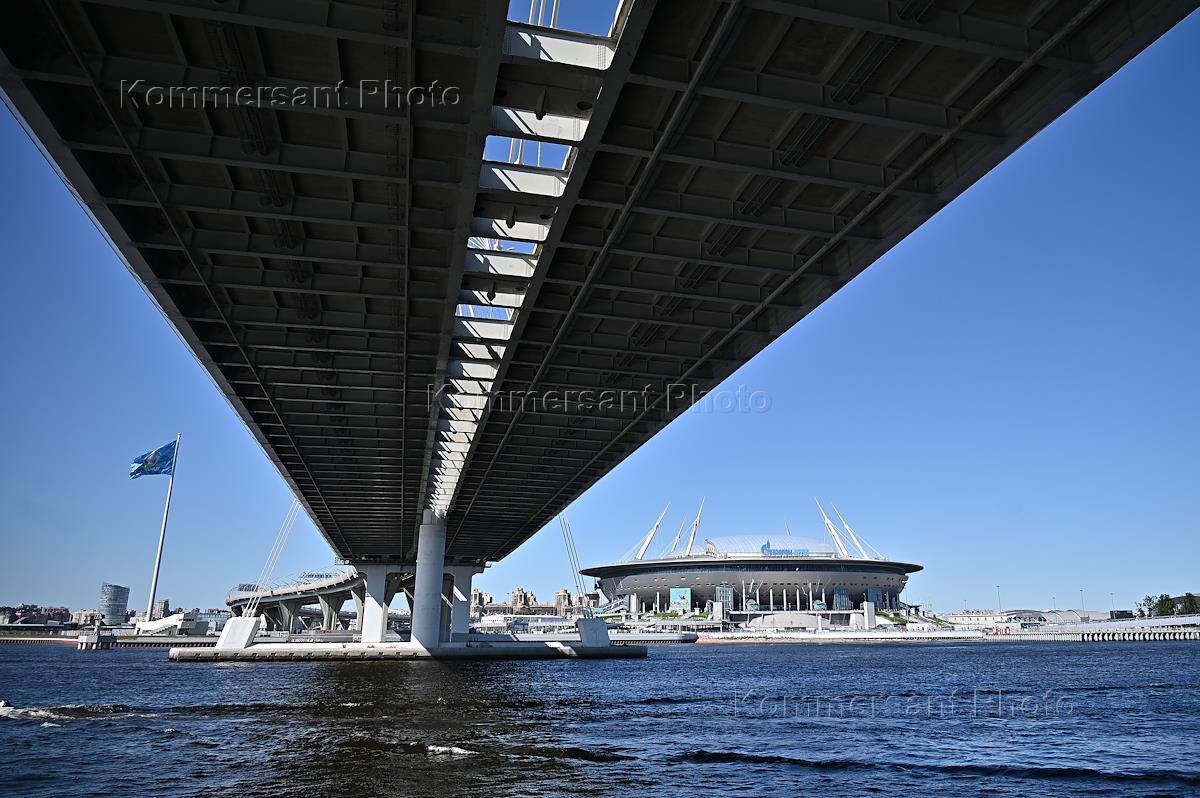 Виды Санкт-Петербурга. Вантовый мост через Петровский канал и стадион "Газпром-Арена".