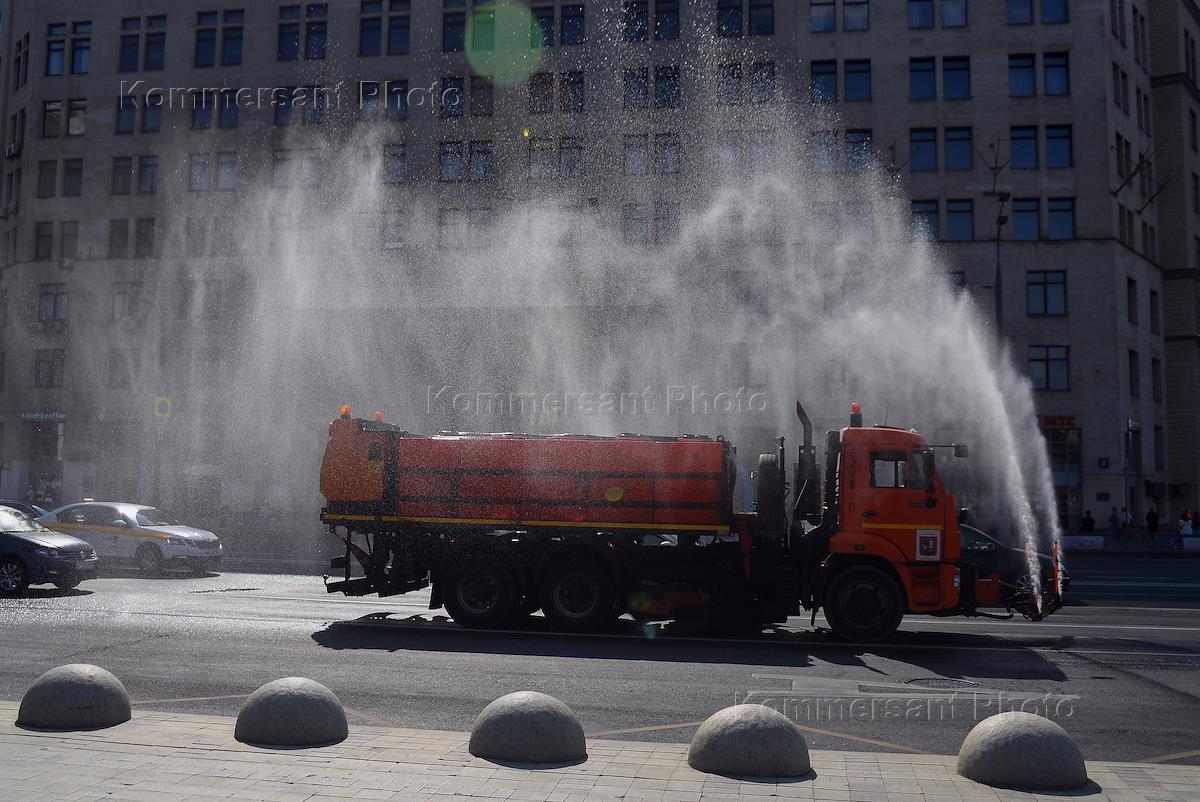 Жанровая фотография. Жара в городе. Аэрация воздуха в городе. Автомобиль коммунальной службы во…