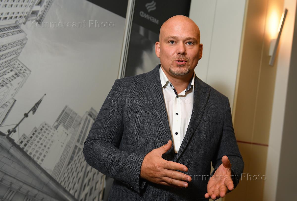 Заместитель директора ИК "ФИНАМ" Ярослав Кабаков во время интервью.