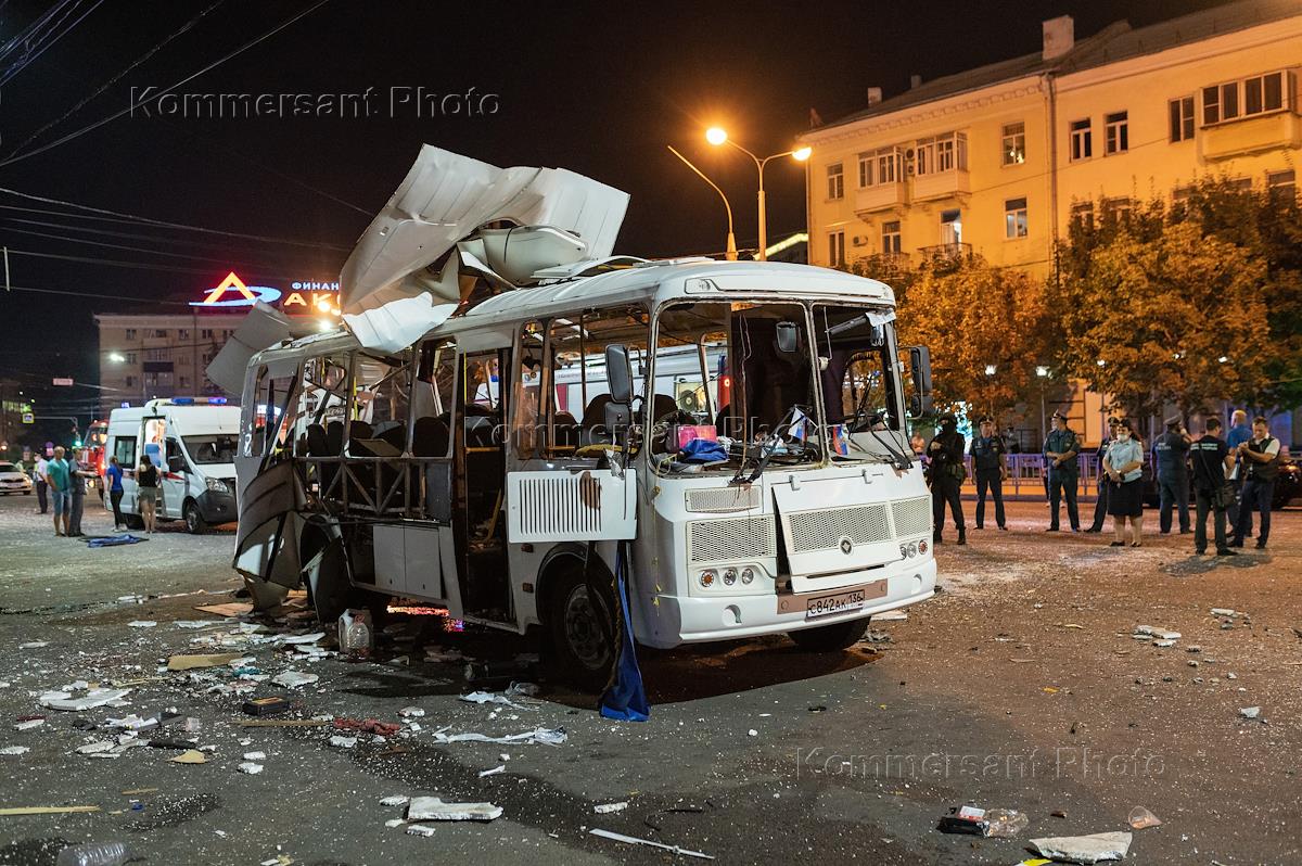 Последствия взрыва в пассажирском автобусе ПАЗ.