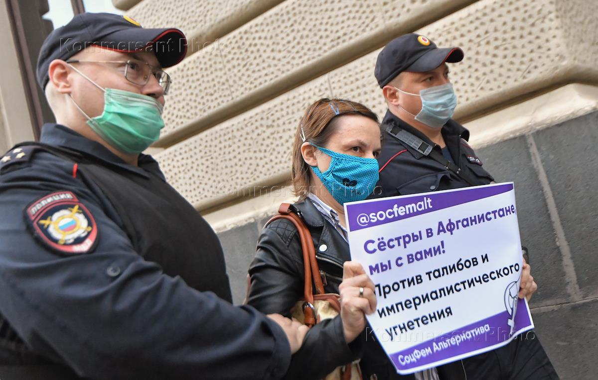 Акция солидарности с женщинами Афганистана, организованная движением "СоцФем Альтернатива", у здания…
