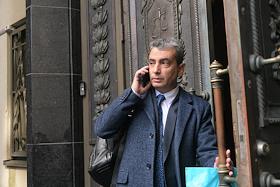 Председатель Псковского регионального отделения партии "Яблоко" Лев Шлосберг у здания Верховного…