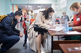 Выборы депутатов Государственной Думы России восьмого созыва. Жанровая фотография. Избиратели на…