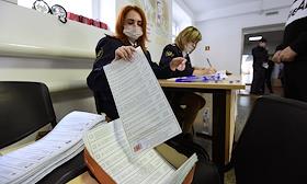 Выборы депутатов Государственной Думы России восьмого созыва. Жанровая фотография. Сотрудники во…