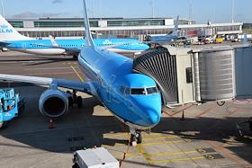 Аэропорт Амстердама "Схипхол". Самолет в терминале для выхода пассажиров из салона.