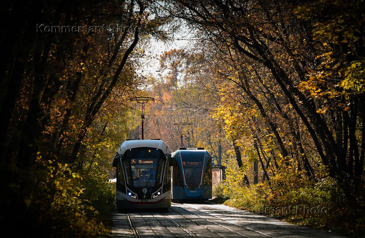 Виды Москвы. Жанровая фотография. Трамвай в районе парка Сокольники.