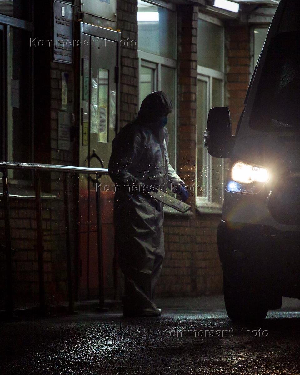 Сотрудник скорой помощи у приемного отделения Покровской больницы, которая принимает пациентов с…