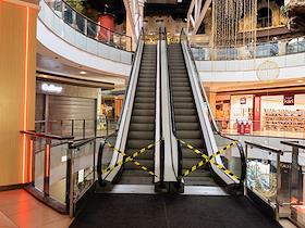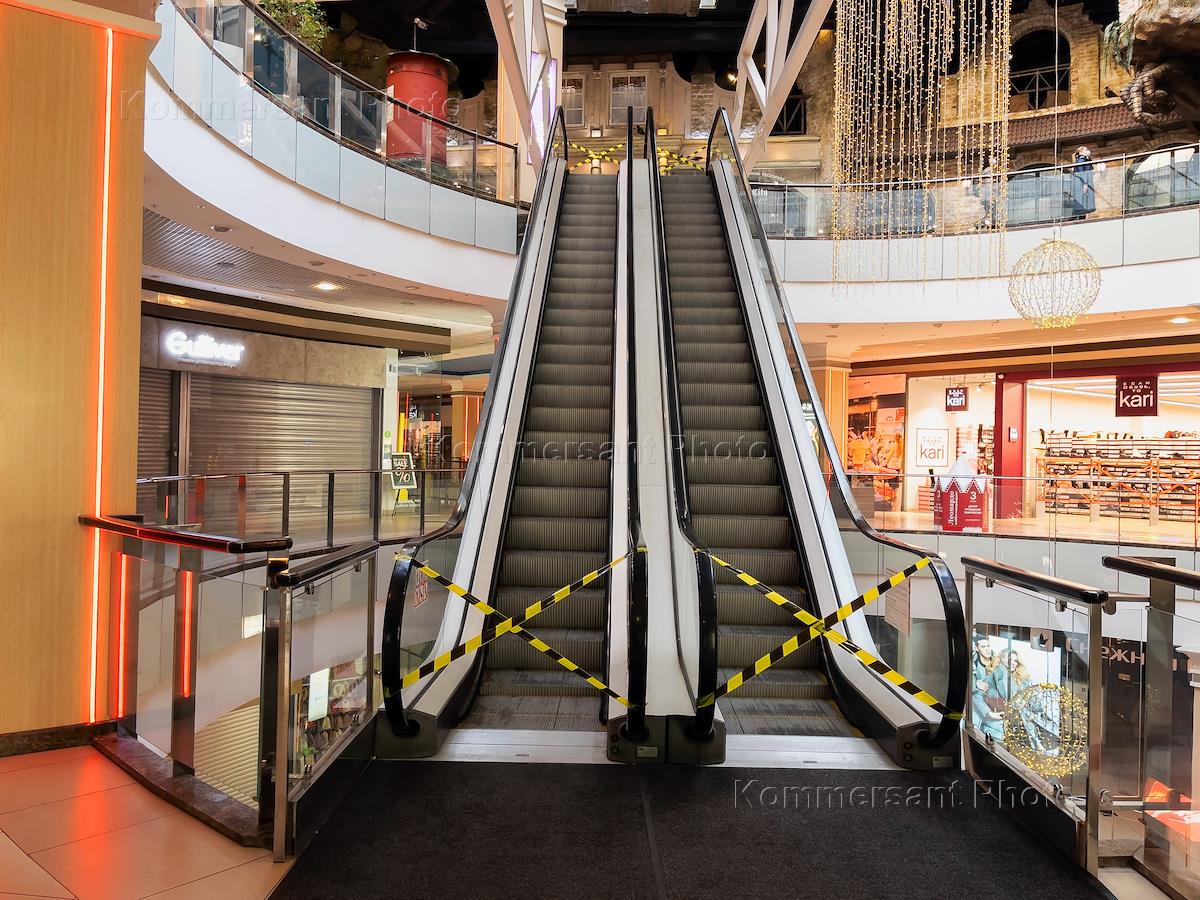Ситуация с коронавирусной инфекции COVID-19 в Воронеже. Жанровая фотография. Перекрытый эскалатор в…