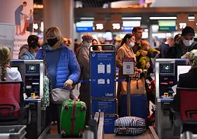 Международный аэропорт "Внуково". Жанровая фотография. Пассажиры у стойки регистрации.