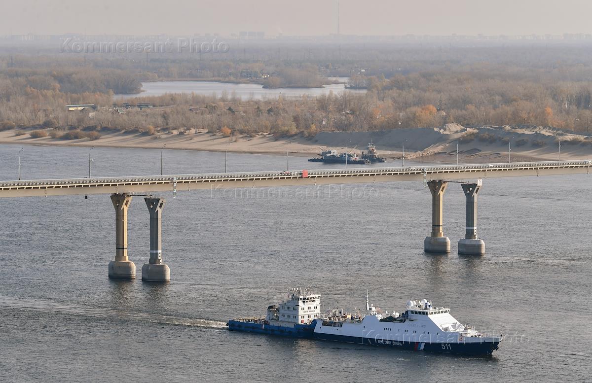Виды Волгограда. Танцующий мост через реку Волгу.