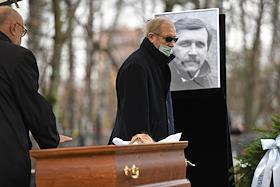 Церемония прощания с режиссером Александром Рогожкиным на Богословском кладбище.