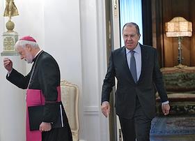 Министр иностранных дел России Сергей Лавров (справа) и Секретарь Святого Престола по отношениям с…