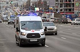 Виды Москвы. Жанровая фотография. Автомобиль скорой помощи на Садовом кольце в районе метро Красные…