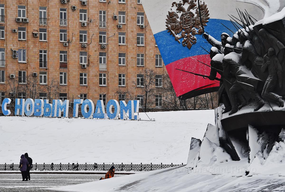 Views of Moscow. Genre photography. New Year's decoration of the city. Light structure "Happy New…