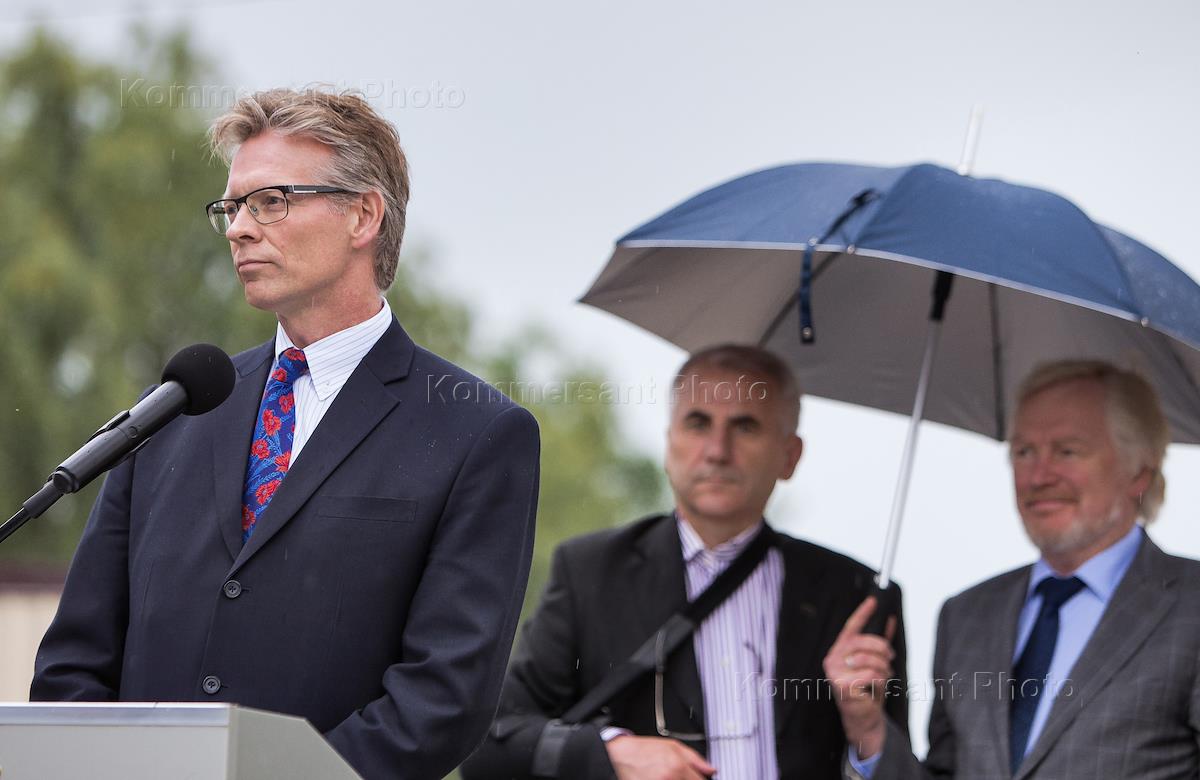 Церемония открытия очистных сооружений. Посол Швеции в России Петер Эриксон (слева) во время…