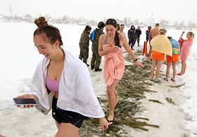 Праздник Крещения Господня. Крещенские купания на озере Верхний Кабан.