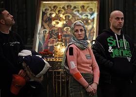 Праздник Крещения Господня. Верующие во время праздничного богослужения в соборе Воскресения…
