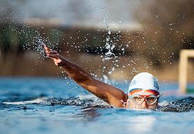 Пятый этап кубка России по зимнему плаванию. Участник соревнований во время заплыва.