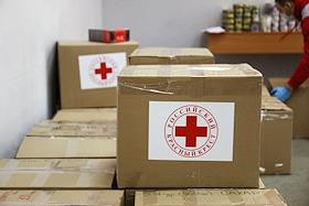 Работа волонтёров в пункте сбора гуманитарной помощи для беженцев из самопровозглашенных Донецкой…