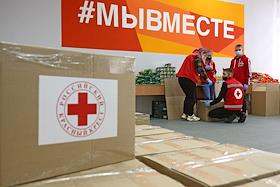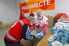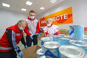 Работа волонтёров в объединенном пункте сбора гуманитарной помощи на базе Дома добровольцев…