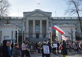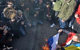 Ситуация у посольства Украины в России в Леонтьевском переулке. Одиночные антивоенные пикету у…