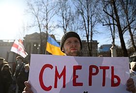 Участник несогласованной акции против специальной военной операции на Украине держит плакат "на…