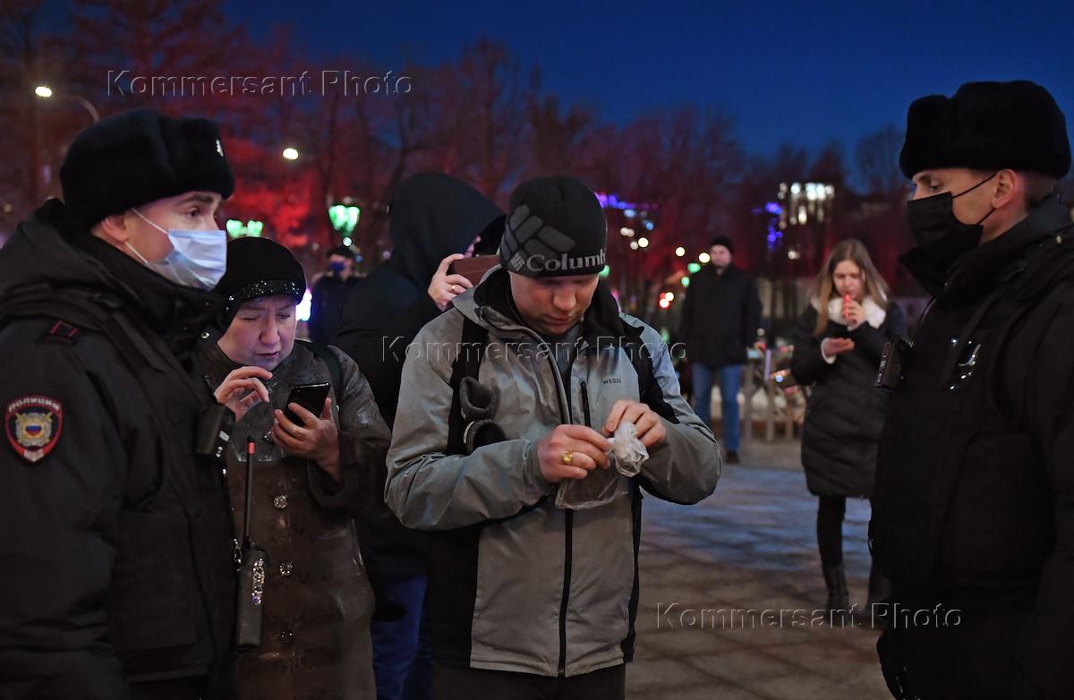 Несогласованная акция против специальной военной операции на Украине на Пушкинской площади. Утром 24…