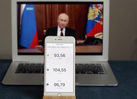 Курсы мировых валют (доллар и евро) по отношению к рублю во время проведения Россией специальной…
