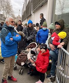 Прием украинских беженцев во Франции. Жанровая фотография. Очередь беженцев на оформление документов…