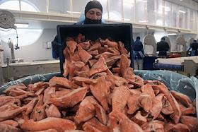 Работа производственного и распределительного центра рыбопромышленного холдинга "Norebo". Работники…