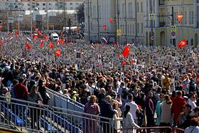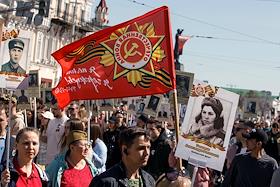 Празднование 77-ой годовщины Победы в Великой Отечественной войне в Томске. Участники перед началом …