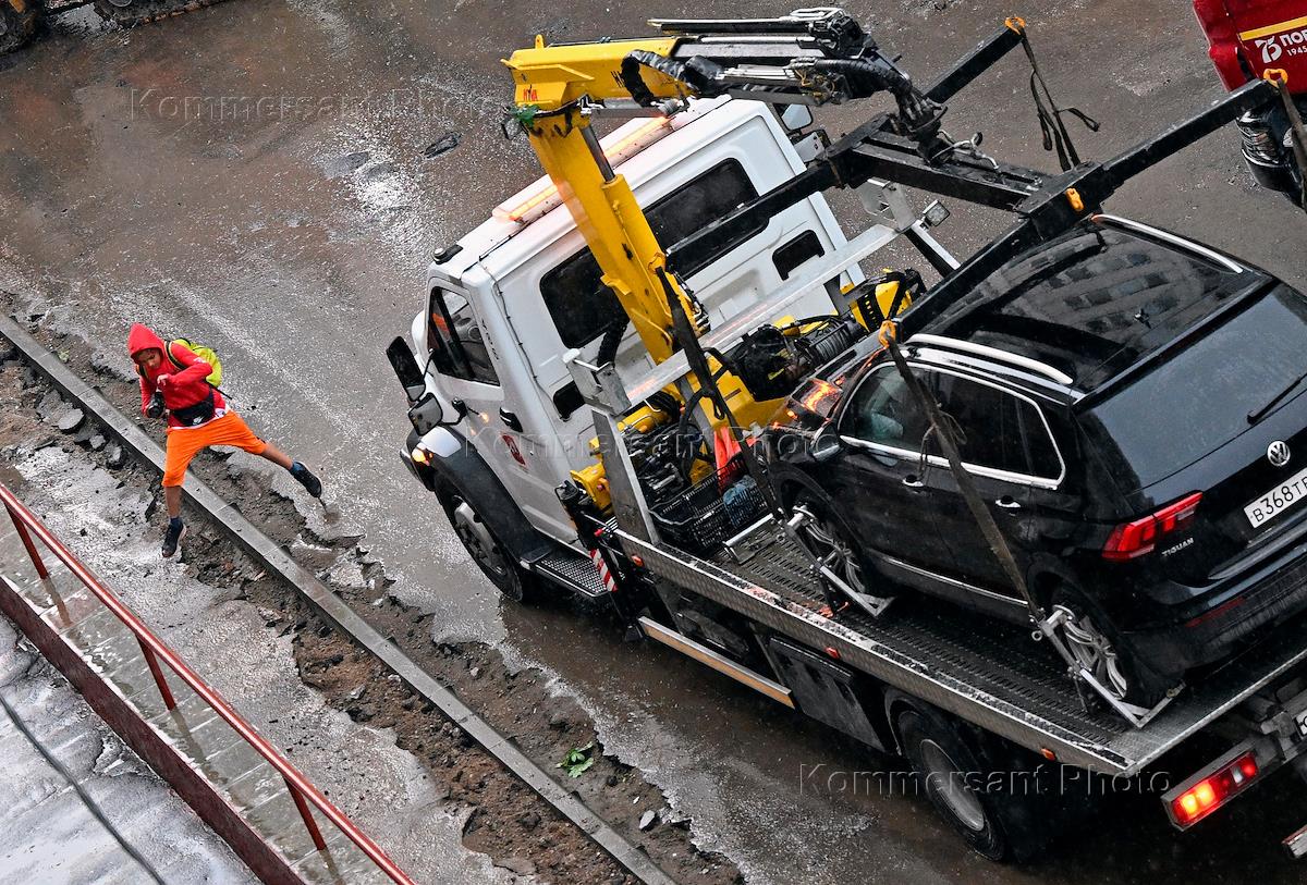 Жанровая фотография. Демонтаж вывески ресторана быстрого питания "Макдоналдс".