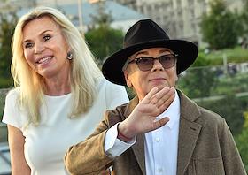 Moscow Fashion Week in Zaryadye Park. Fashion designer Valentin Yudashkin (right) and his wife…