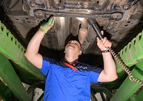 Работа пункта технического осмотра автомобилей. Жанровая фотография.