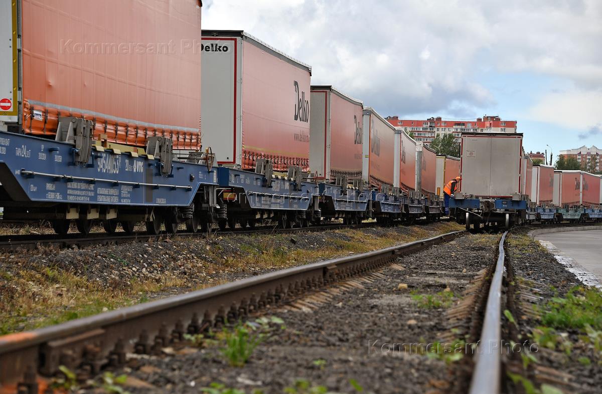 Отправка полносоставного контрейлерного поезда из Подмосковья в Новосибирск. Жанровая фотография.…