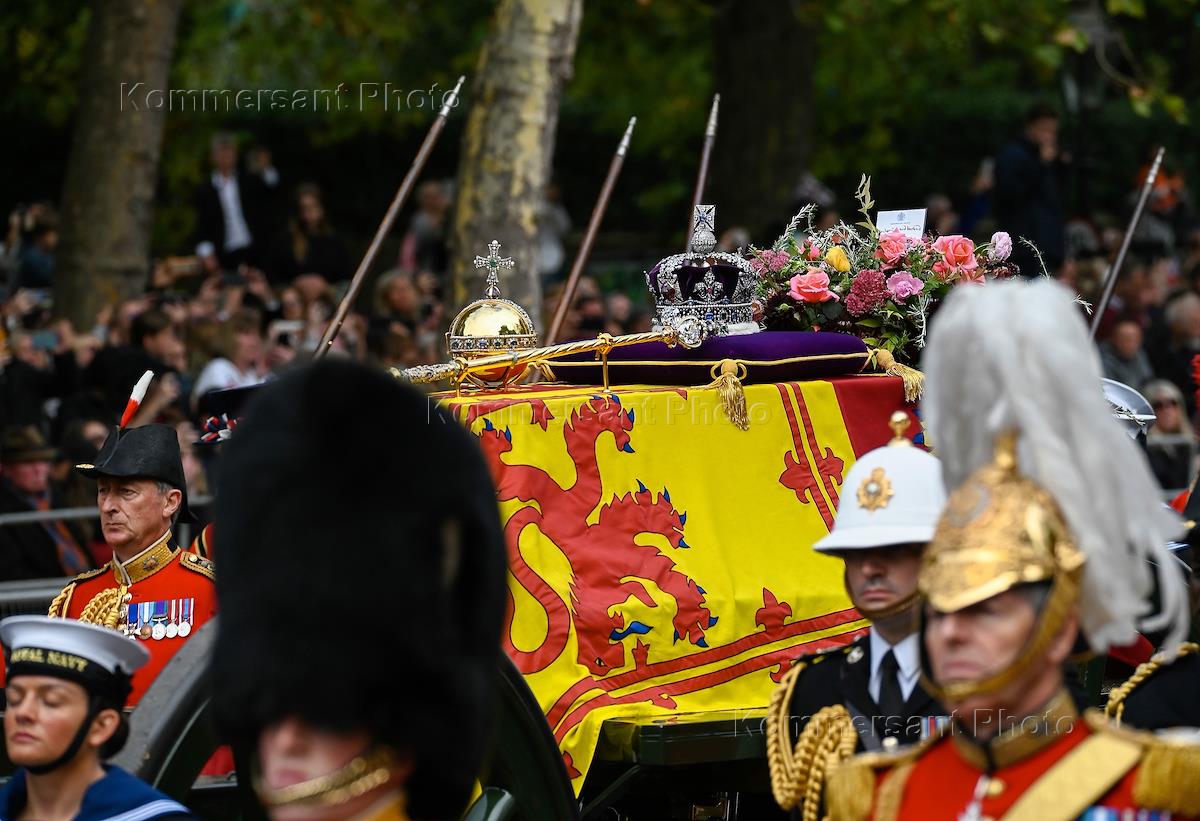 Funeral ceremony for Queen Elizabeth II at Westminster Abbey. Genre photography. Funeral procession…
