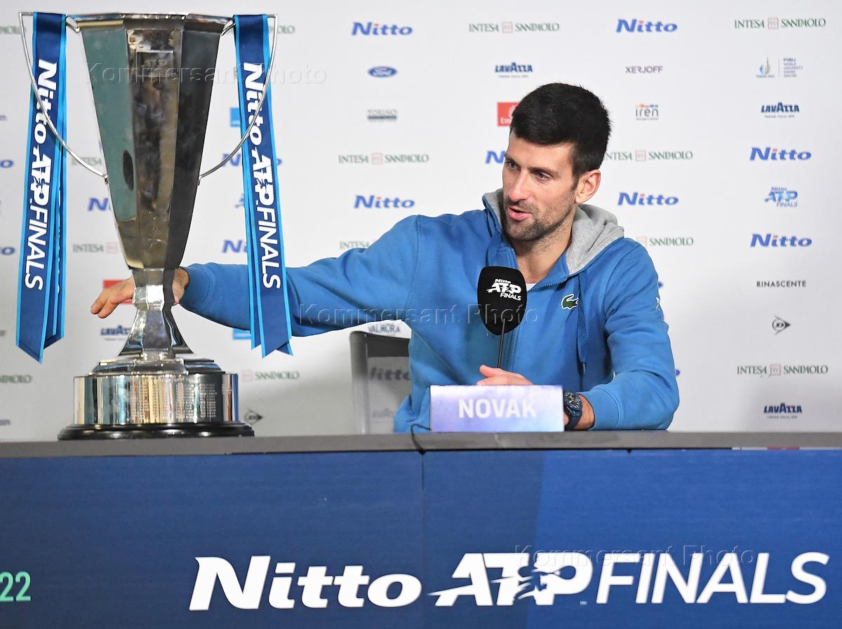 Итоговый турнир ATP (Nitto ATP Finals) в Турине. Сербский теннисист Новак Джокович после матча с…