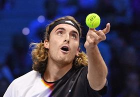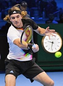 Итоговый турнир ATP (Nitto ATP Finals) в Турине. Греческий теннисист Стефанос Циципас во время матча…