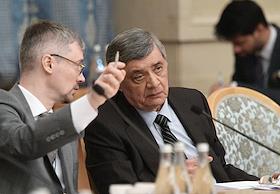 Заседание Генерального совета Федерации независимых профсоюзов России (ФНПР). Слева направо:…