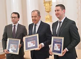 Церемония гашения почтовых марок из серии "История российской дипломатии" в Доме приемов МИД России.…