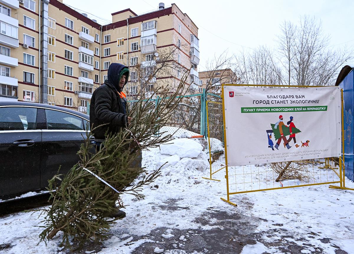 Reception points for Christmas trees in Moscow courtyards as part of the "Christmas tree cycle"…