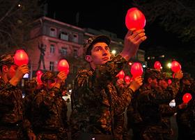 Пасхальный Сочельник (Чрагалуйс). Шествие с лампадами от церкви Св. Саркиса до площади Республики.…